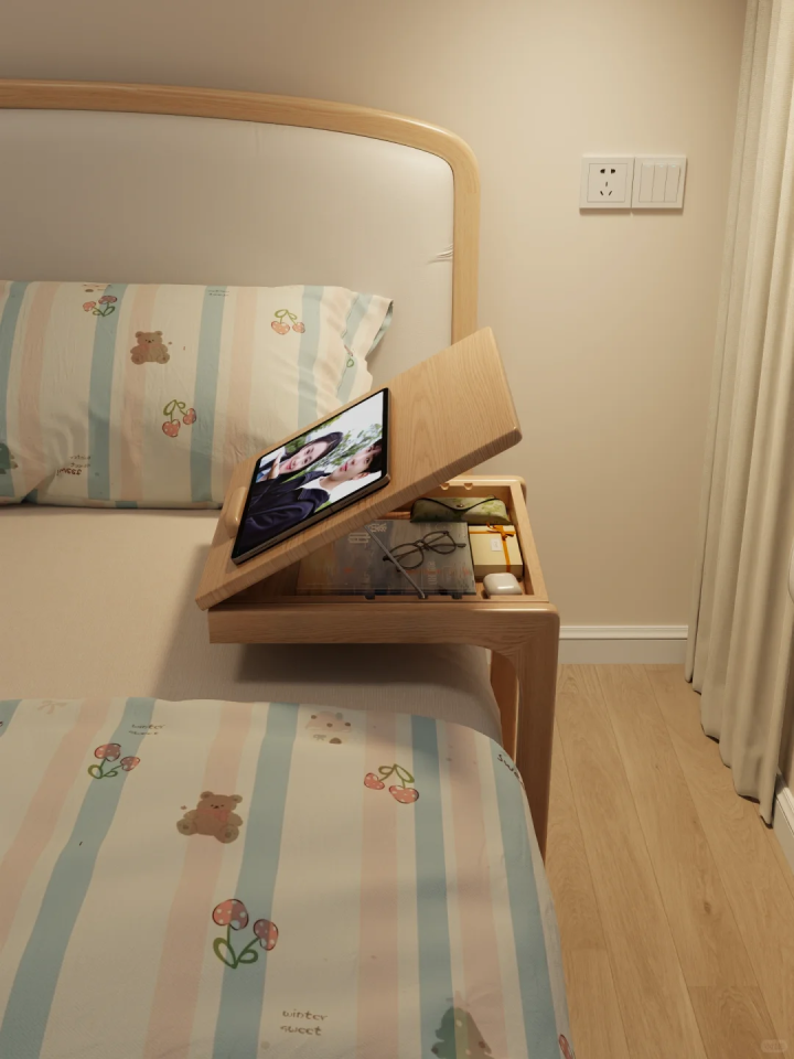 懒人有福了,毕竟小桌板当做床头柜,真的可以满足你一天24小时赖在床上的欲望。